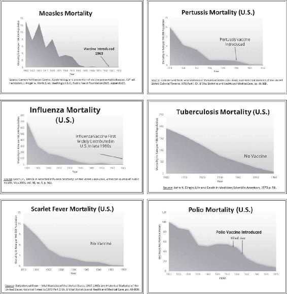 Most Americans accept this claim as dogma. It will therefore come as a surprise to learn that it is simply untrue. Science actually gives the honor of having vanquished infectious disease mortalities to nutrition and sanitation. A comprehensive study of this foundational assertion published in 2000 in the high-gravitas journal Pediatrics by CDC and Johns Hopkins scientists concluded, after reviewing a century of medical data, that “vaccination does not account for the impressive decline in mortality from infectious diseases . . . in the 20th century.” As noted earlier, another widely cited study, McKinlay and McKinlay—required reading in virtually every American medical school during the 1970s—found that all medical interventions including vaccines, surgeries, and antibiotics accounted for less than about 1 percent—and no more than 3.5 percent—of the dramatic mortality declines. The McKinlays presciently warned that profiteers among the medical establishment would seek to claim credit for the mortality declines for vaccines in order to justify government mandates for those pharmaceutical products.