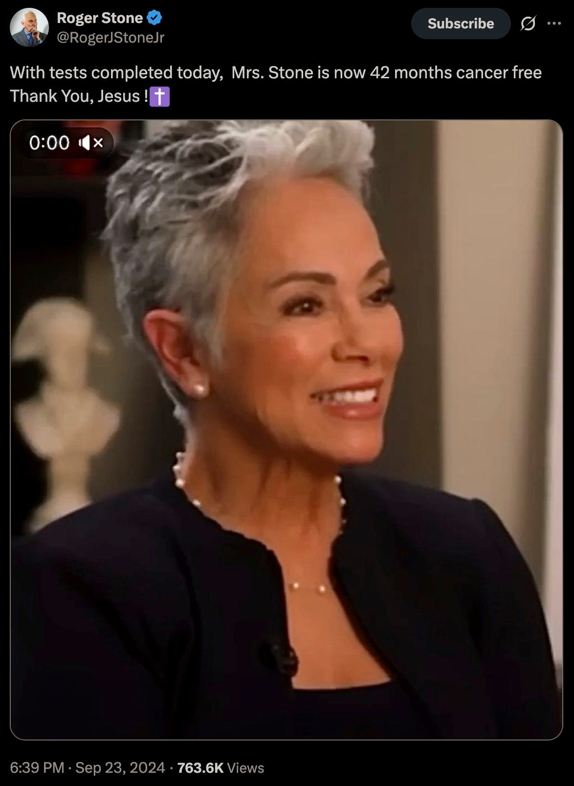 Roger Stone's Wife Beat Cancer: Non-Hodgkin Lymphoma (NHL) Cured With The Joe Tippins Protocol