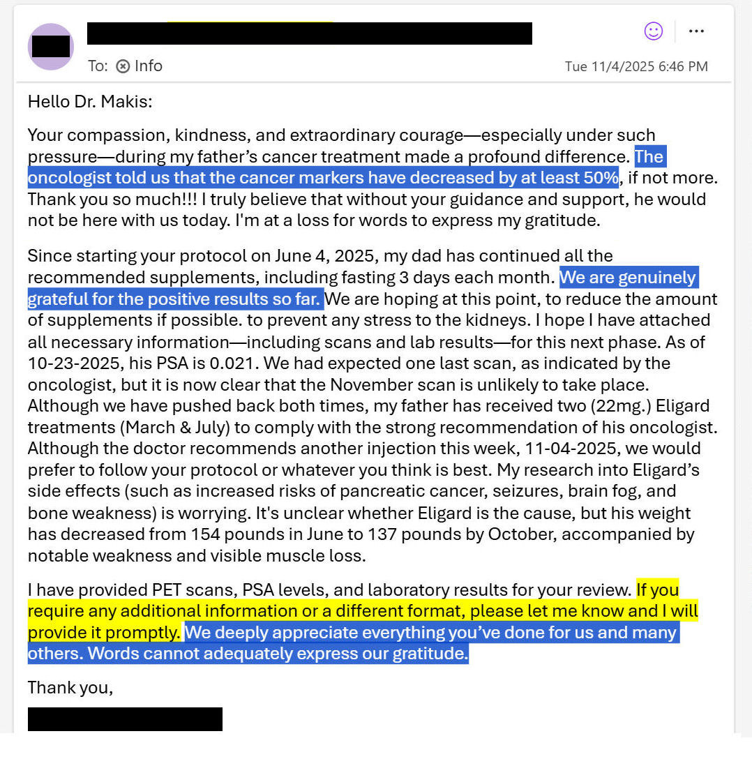 And Dr. Risch also knows about Dr. Makis, and the many lives that he has saved; for example, here is his latest case study: