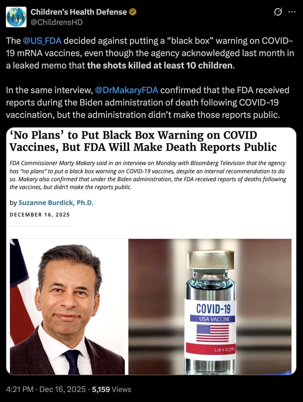 Here is FDA Commissioner Dr. Marty Makary back-peddling and lying, despite the Safety and Epidemiology Center within his own agency recommending the ‘black box’ warning:”