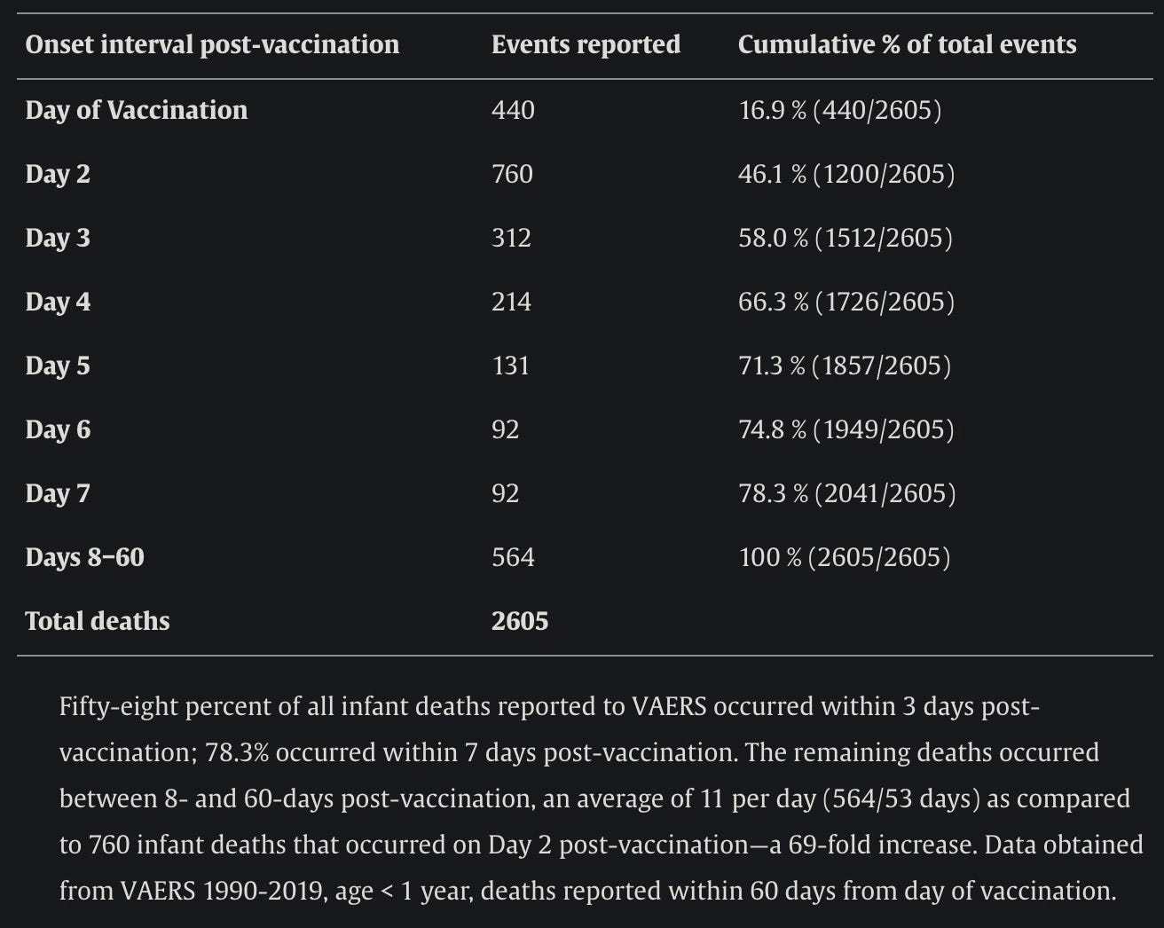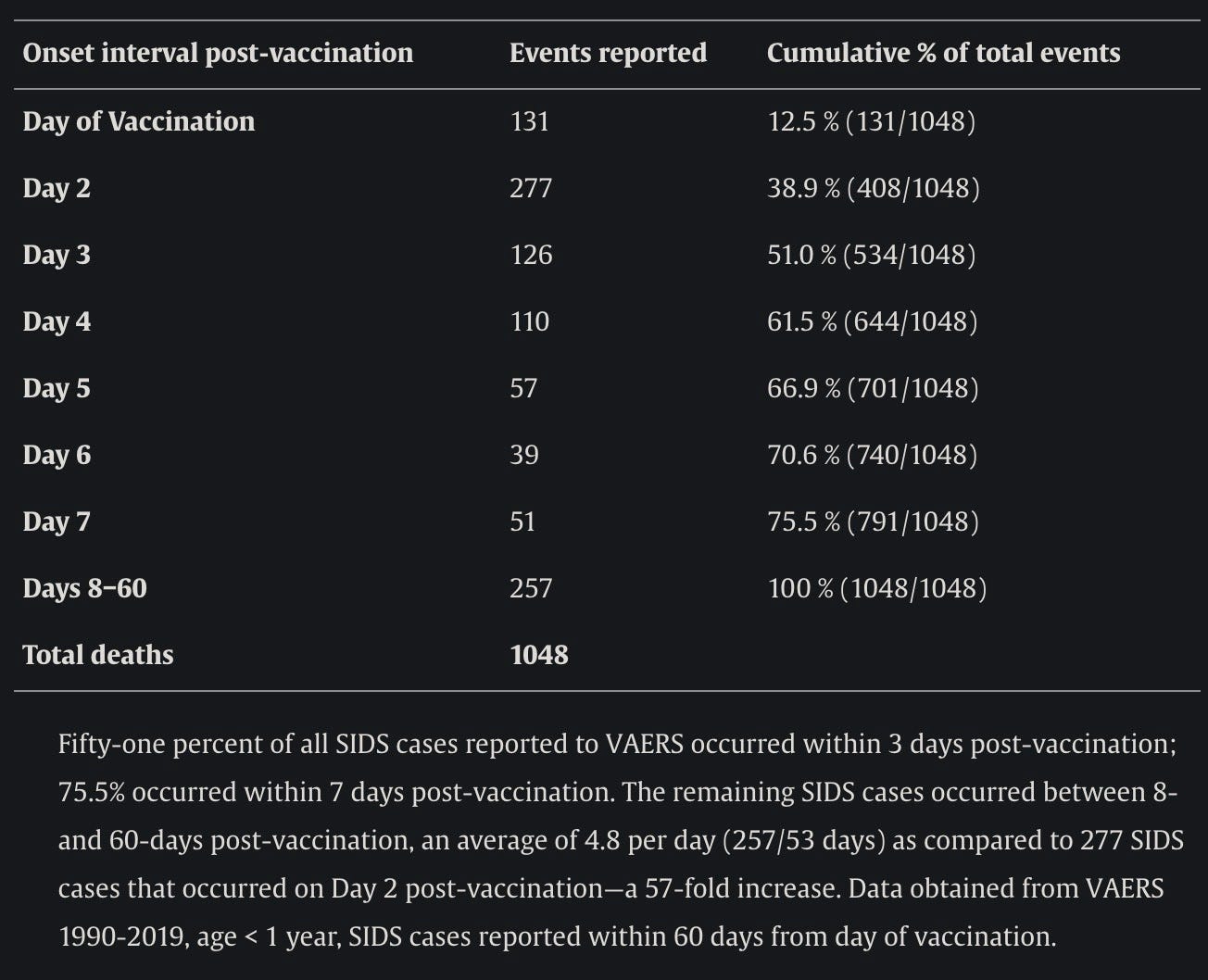 …with the Medical Industrial Complex having coined yet another one of their “Safe and Effective” reality inverting coverup terms in Sudden Infant Death Syndrome (SIDS), except that prior to the perpetually expanding childhood vaccination schedule there was never in human history any “sudden” infanticide by injection…