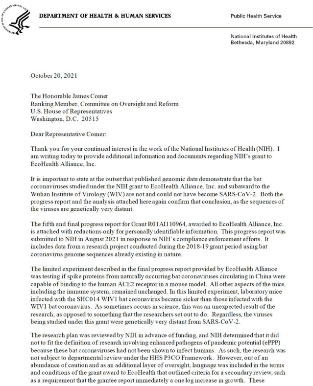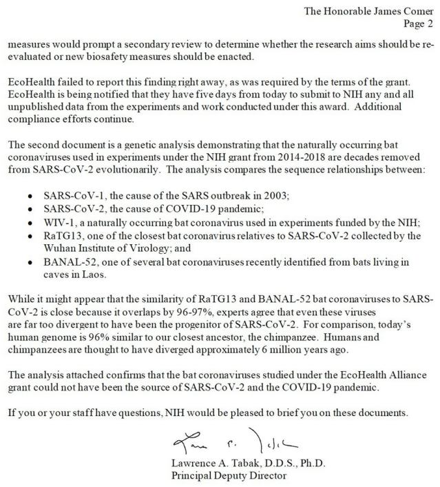 According to Tabak, the NIH had reviewed EcoHealth’s research plan in advance of approving the grant but claims it wasn’t subjected to additional review at the time as it didn’t fit the definition of “research involving enhanced pathogens of pandemic potential because these bat coronaviruses had not been shown to infect human.”