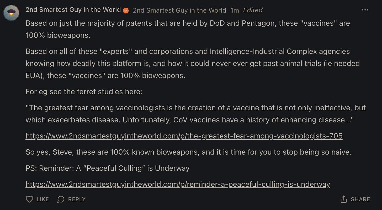 Before we get to my reply to him, let us take a look at this Substack’s pinned X post: