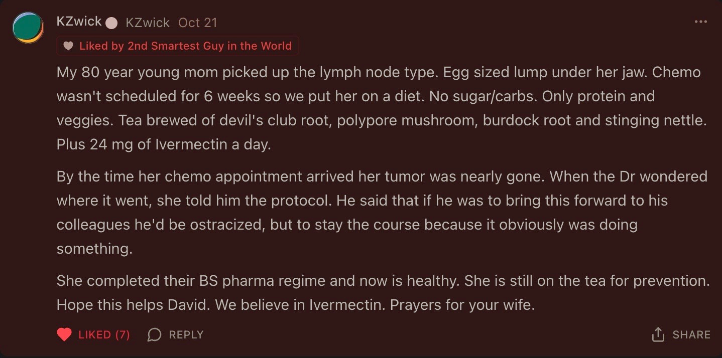 Our third and final success story involves Ivermectin as a standalone cancer cure, which is also unsurprising given what we know about this miracle compound…