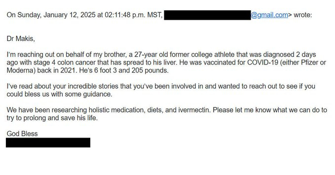 STORY: 27 year old USA College athlete was diagnosed with Stage 4 Colon Cancer with spread to the liver, in January 2025. Had mRNA injections so this is possibly mRNA Induced Turbo Colon Cancer.