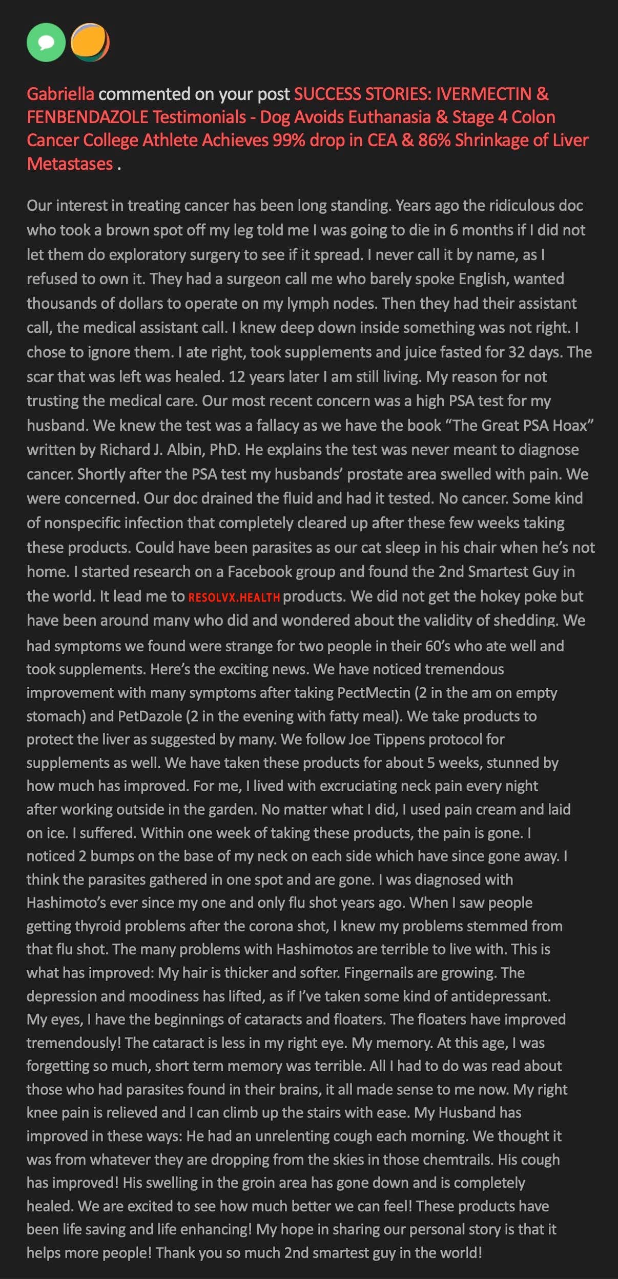 We are being attacked because too many cancer patients are now benefiting from Ivermectin, Fenbendazole, Mebendazole, without paying Big Pharma $100,000s.