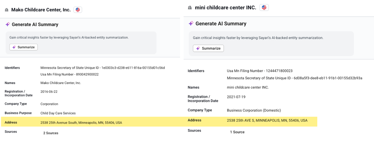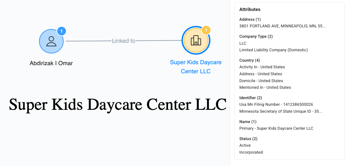 Shirley and the private investigator note that Creative Minds Daycare L.L.C. was shuttered due to violations and reopened the next day as Super Kids Daycare Center LLC.