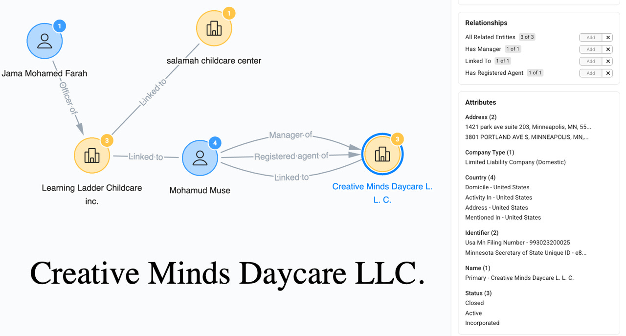 This analysis moves beyond isolated entities and enables the detection of network behavior, including shared addresses, recycled officers, repeated vendors, circular payment flows, and clusters of entities with minimal real-world operations. Such pattern recognition is essential for identifying front companies.