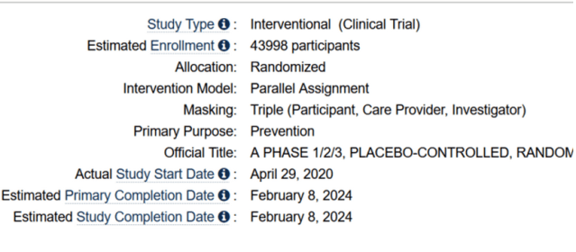 The Pfizer phase three trial is not due to complete until February 8th 2024, after previously being estimated to complete in April 2023.