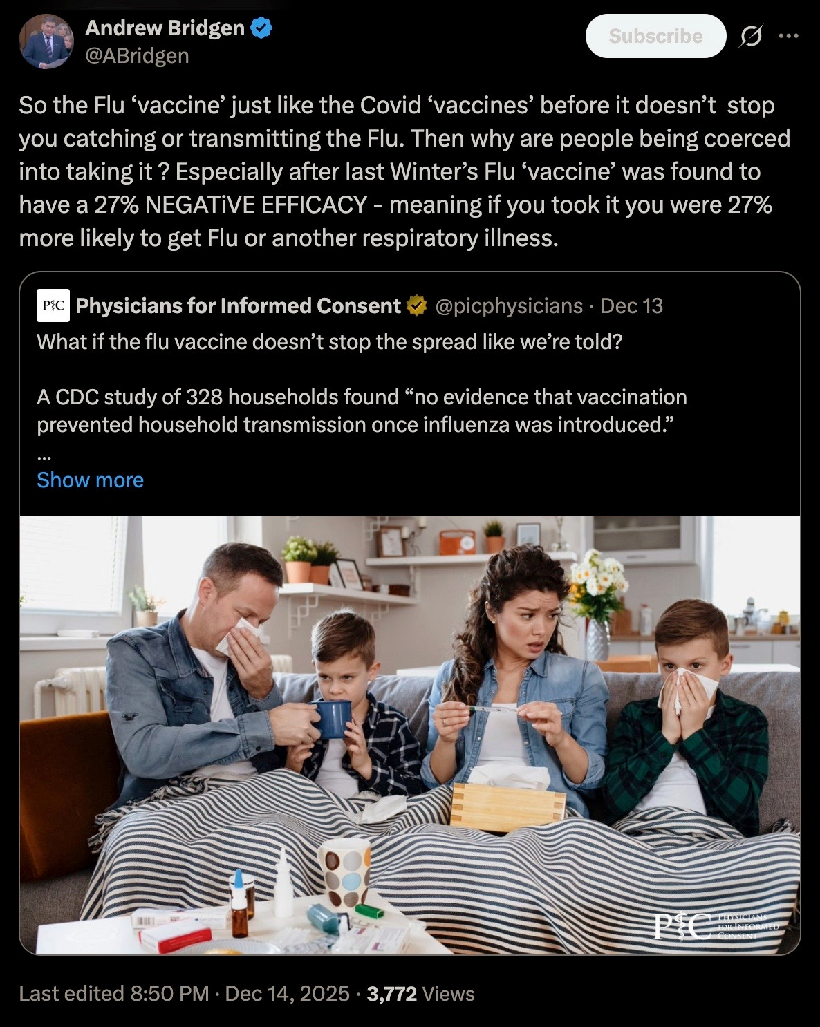 A flu vaccine killed my wife’s grandmother 35 years ago.