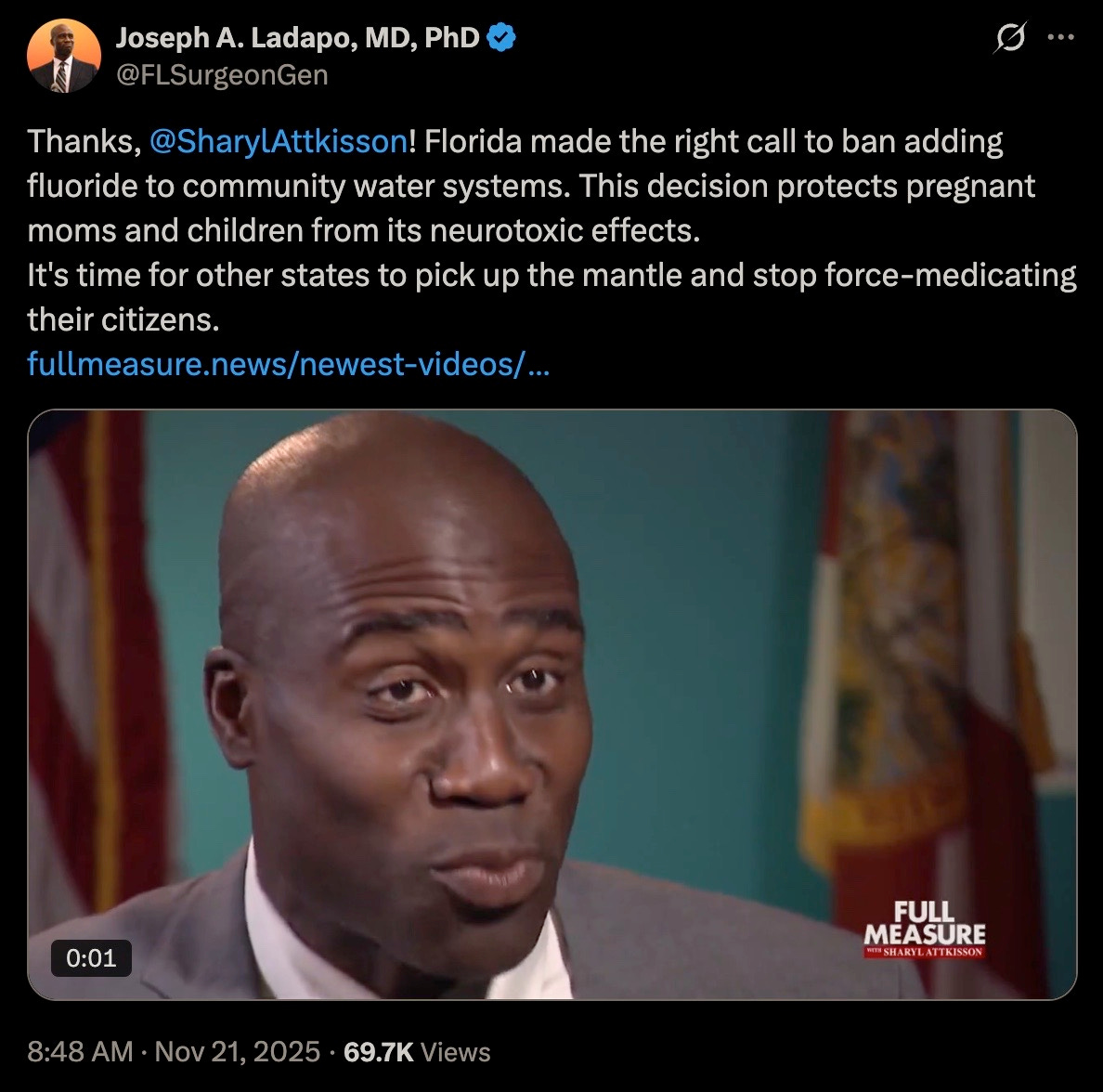 …with states like Florida concurrently now working to remove fluoride from their municipal water systems…