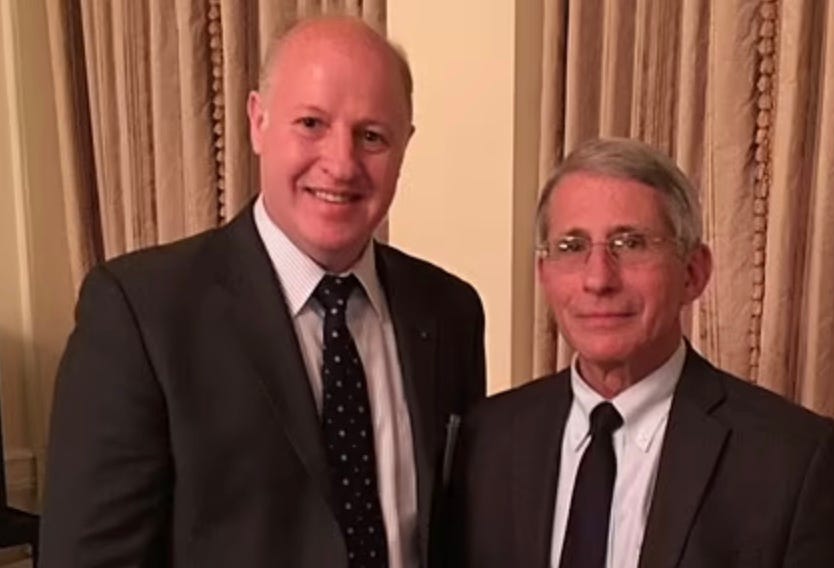 [The two guys below were competing for who earned the most: each collected about $450 K/year—that we know about. However, Jeremy Farrar earned about $650 K/year working for the Wellcome Trust. As Catherine Austin Fitts says, “The crime that pays is the crime that stays.” If we don’t charge and try the criminals, things will only get worse.