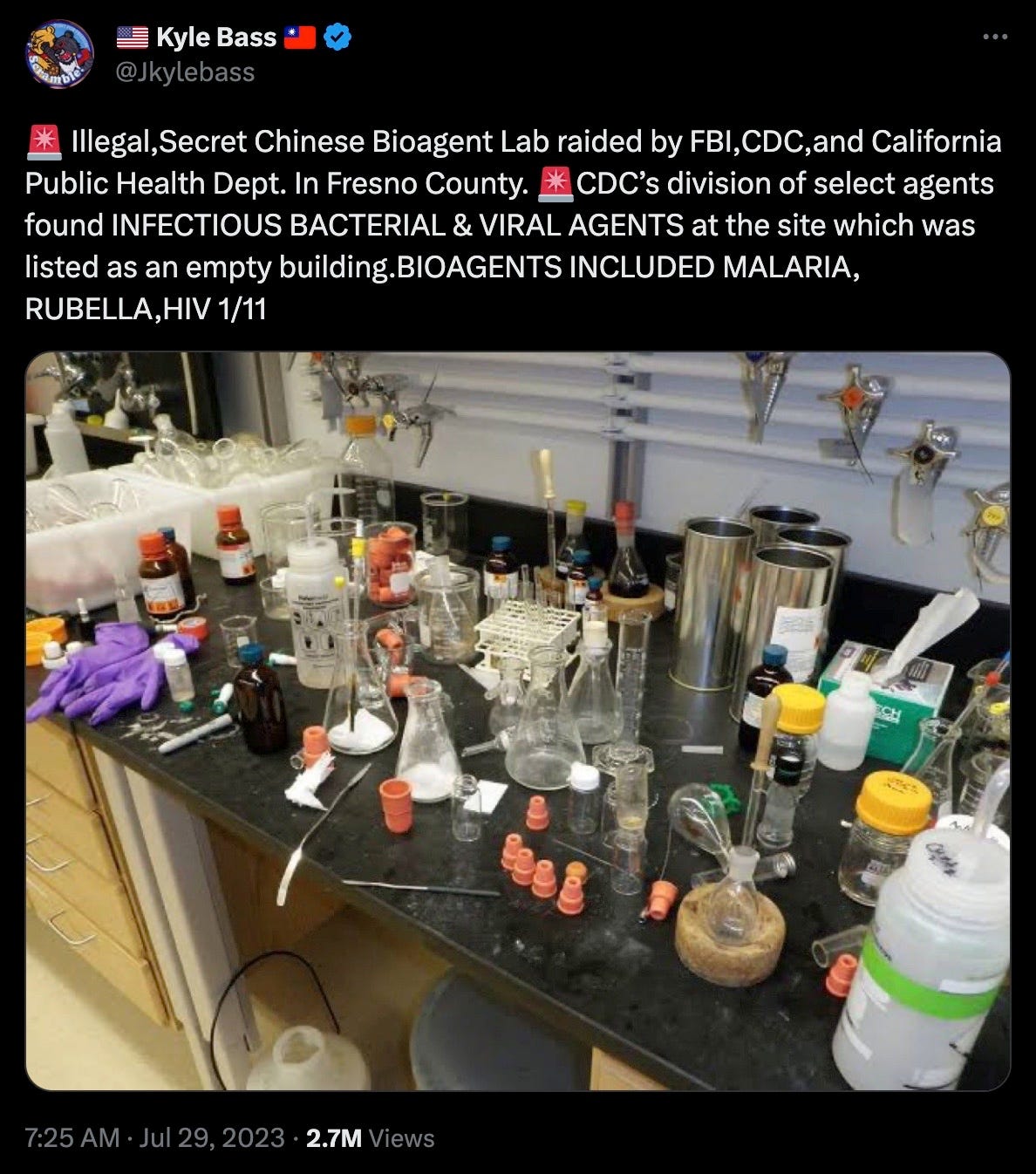 Add to that the presence of secret Chinese bioterror labs interspersed all across America:
