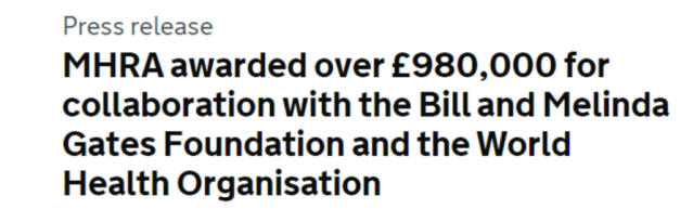 In 2017, the UK Medicine Regulator, the MHRA, received a grant from the Bill & Melinda Gates Foundation worth £980,000 to facilitate a “collaboration” between the two entities.
