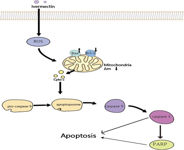 It was also proven that IVM has a synergistic effect with cytarabine and daunorubicin on the treatment of leukemia. Wang's experiment found that IVM could selectively induce mitochondrial dysfunction and oxidative stress, causing chronic myeloid leukemia K562 cells to undergo increased caspase-dependent apoptosis compared with normal bone marrow cells [53]. It was also confirmed that IVM inhibited tumor growth in a dose-dependent manner, and dasatinib had improved efficacy.
