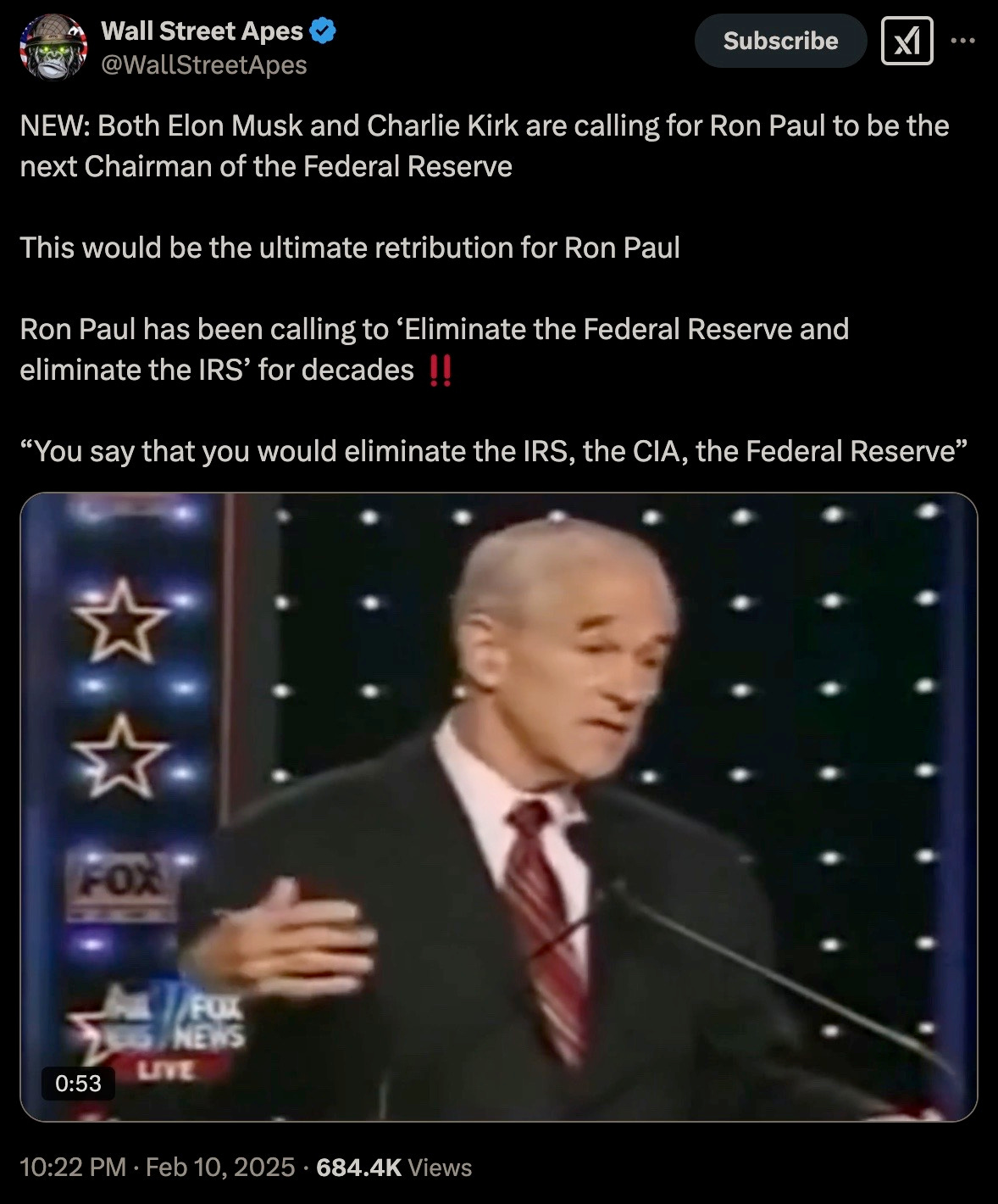 In the cited video Ron Paul agreed that the CIA, FBI, Department of Homeland Security, IRS and Federal Reserve should all be shuttered; to wit: