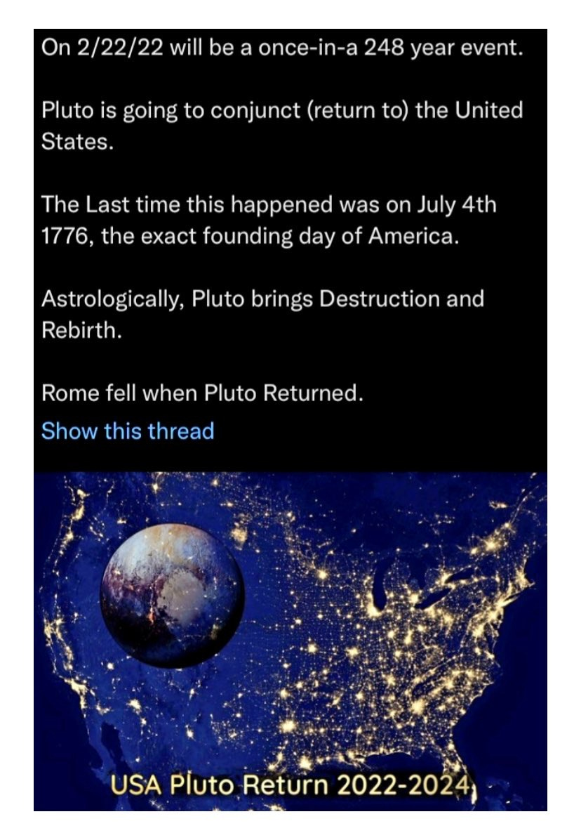 The 22nd day of the 2nd month of 2022 marks Pluto’s Return. The planet of war.