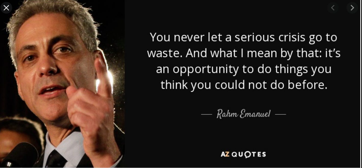 Dr Schwab and his Globalists friends certainly did not let a crisis go to waste as Rahm Israel Emmanuel, former Mayor of Chicago and President Obama's Chief of Staf, once advised.