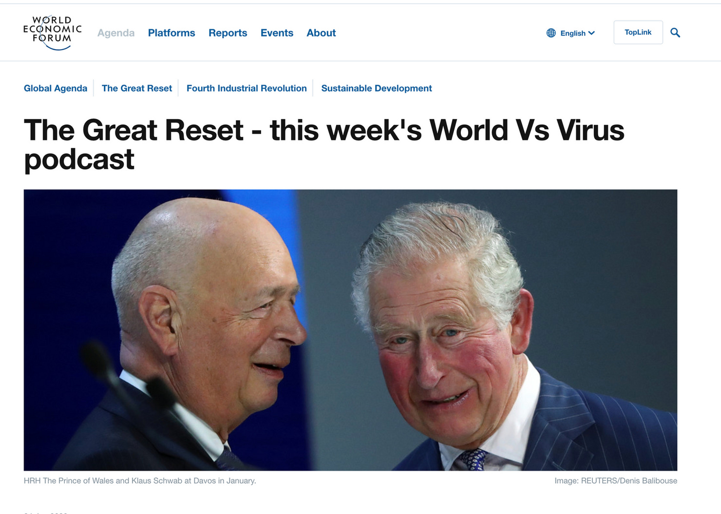 “We have recently seen the WEF ( World Economic Forum) announce The Great Reset and the launch of Dr Klaus Schwab's Fourth Industrial Revolution. Even Prince Charles of England got involved in the action! https://www.weforum.org/agenda/2020/06/the-great-reset-this-weeks-world-vs-virus-podcast/
