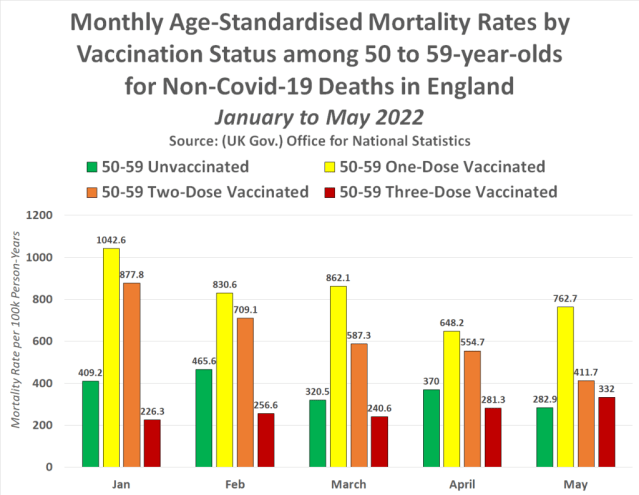 These are age-standardised figures. There is no other conclusion that can be found for the fact mortality rates per 100,000 are the lowest among the unvaccinated other than that the Covid-19 injections are killing people.