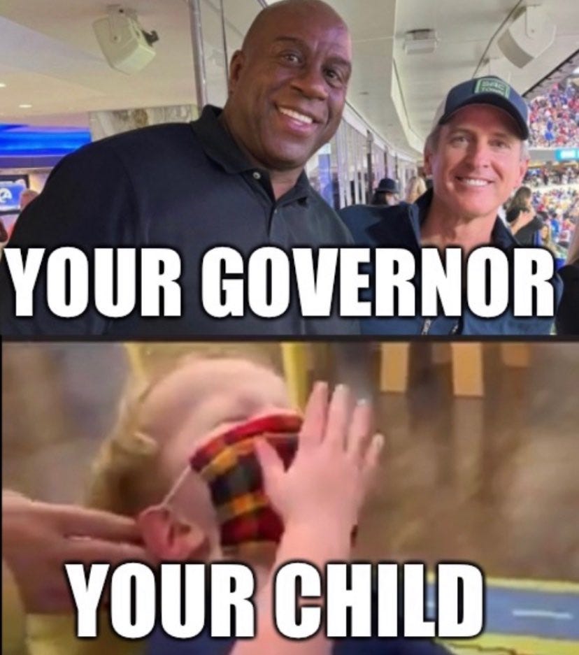 Gavin Newsom is an outgrowth from the Pelosi crime family. He was embedded into his position to further destroy what’s left of California. He is nothing more than a Cult analogue of Canada’s dopey gopher PM. They are ALL heavily paid off, wholly Cult owned, and well “invested” in BigPharma stocks. They are ALL part of this PSYOP-19. And even though Magic Johnson politely mugs for the camera, he knows better. Which is precisely why he’s still alive.