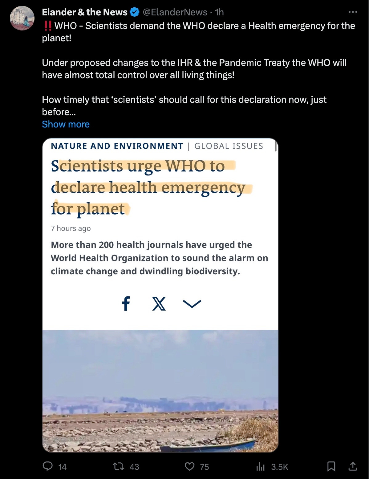 That’s ALL we need is for the corrupt “health journals” to urge the WHO to declare an emergency. It’s all the same people, playing the same games. Luckily people know the journals are part of the manipulated narrative.