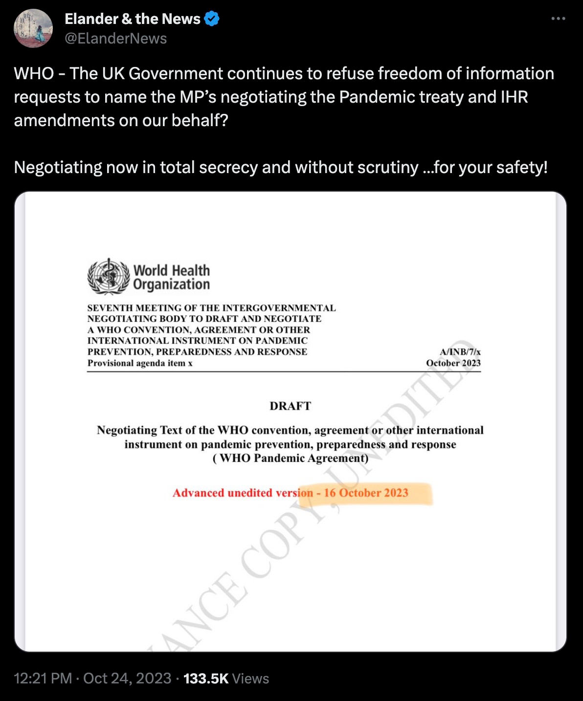 The UK Government Continues to Refuse Freedom of Information Requests to Name MP’s Secretly Negotiating the WHO's Pandemic Treaty and IHR Amendments