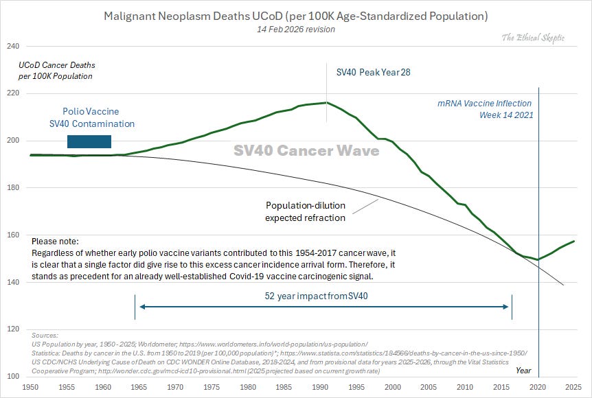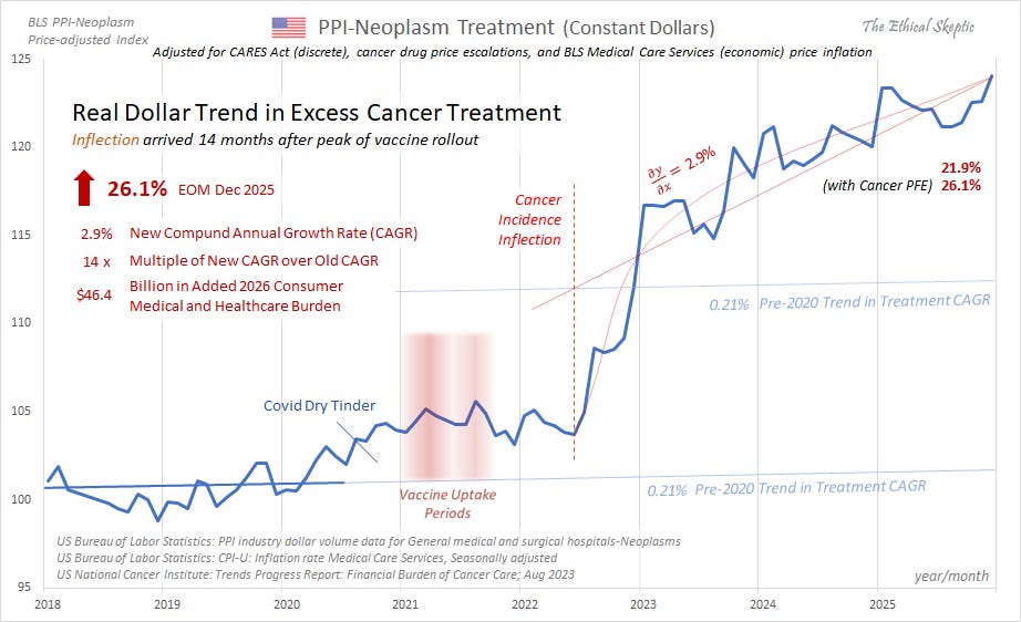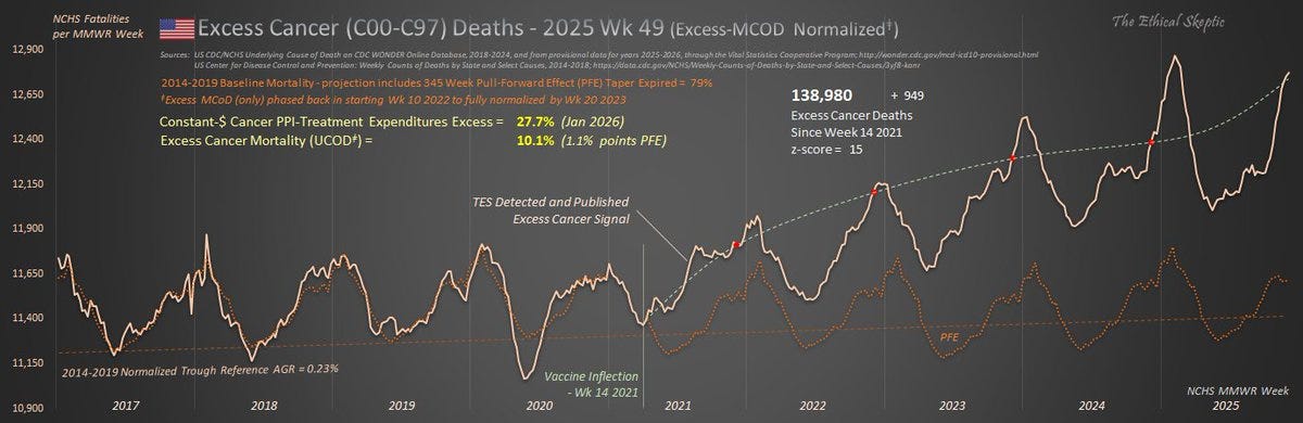 Excess Cancer Mortality has accelerated beyond even its old elevated trend. Elevated at 10.1% over baseline. PFE here is only 1.1-pts of this excess (11%).