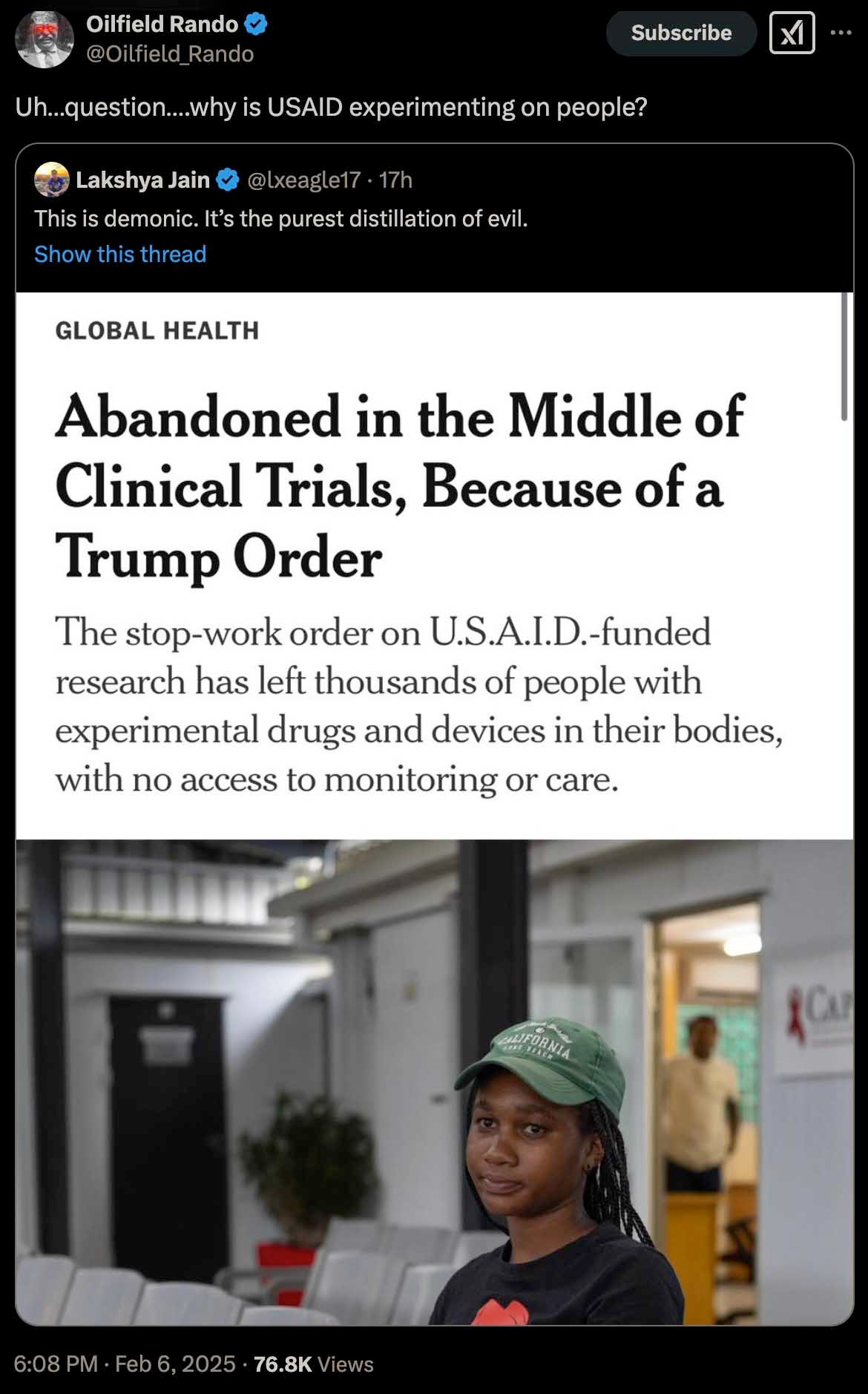 And exactly what business does USAID have conducting Frankenstein-like human experiments?