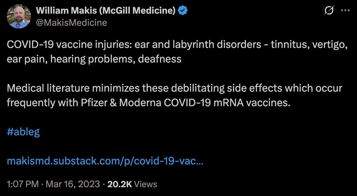 There are also many other causes such as blood vessel disorders, Meniere’s disease and so on and so forth, many of which also coincidentally happen to be known “vaccine” adverse events.