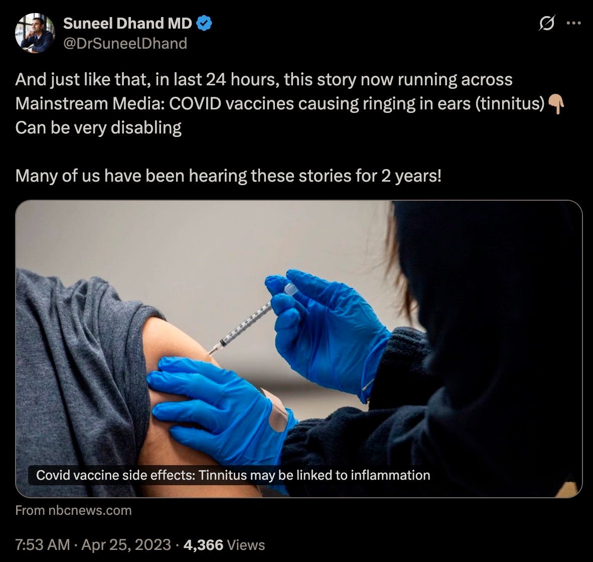 Also, if tinnitus is being caused by “vaccine” induced inflammation…