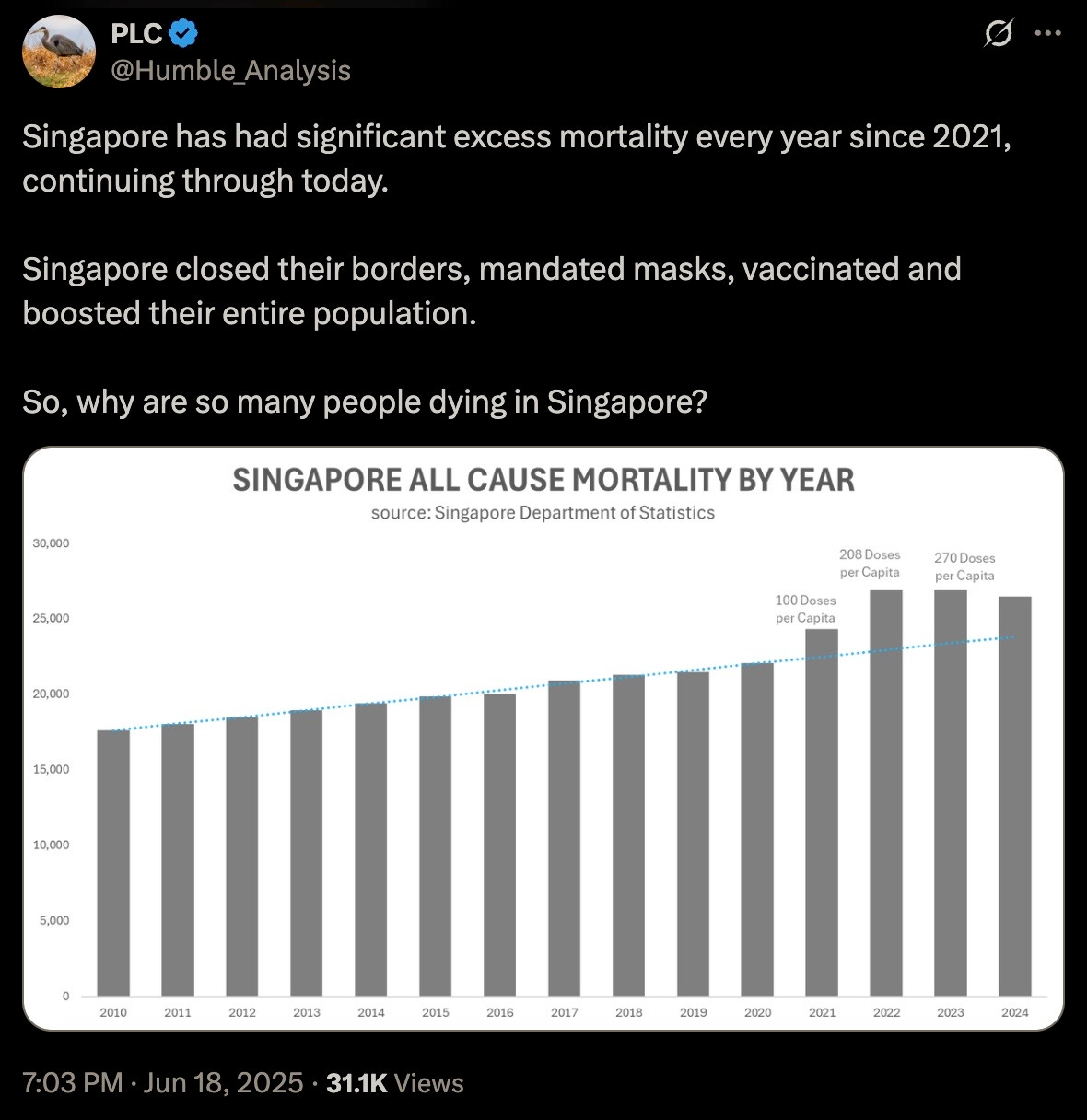 The cause is painfully obvious, and we may safely deduce that a significant percent of Singapore’s excess mortality post “vaccine” rollout is turbo cancer related.