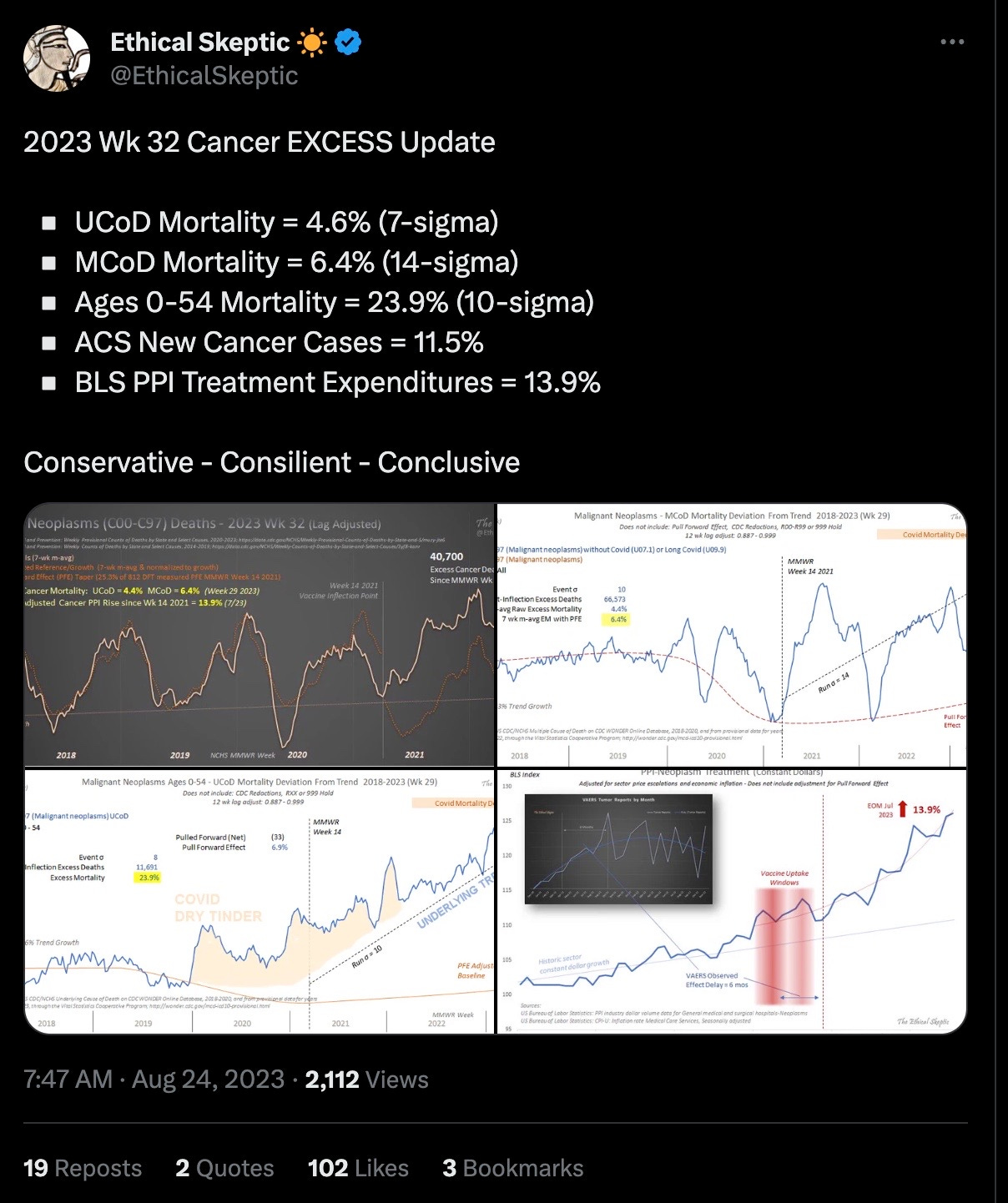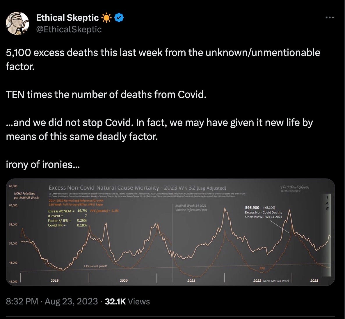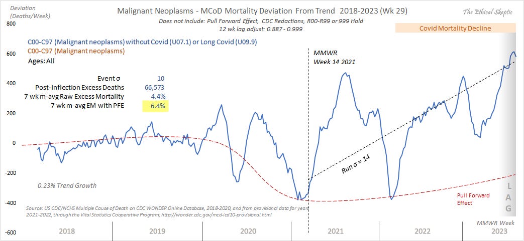 Yesterday this Substack reviewed the latest cardiac mortality data: A few days before that, this Substack reviewed the latest cancer data: Today we tie these terrifying trends together by reviewing the latest data on excess non-PSYOP-19 natural cause mortality: