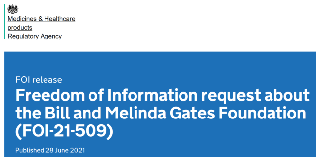 But according to a Freedom of Information request answered by the MHRA in May 2021, the Gates Foundation sent funds of over $3 million to the MHRA to support “a number of projects.”