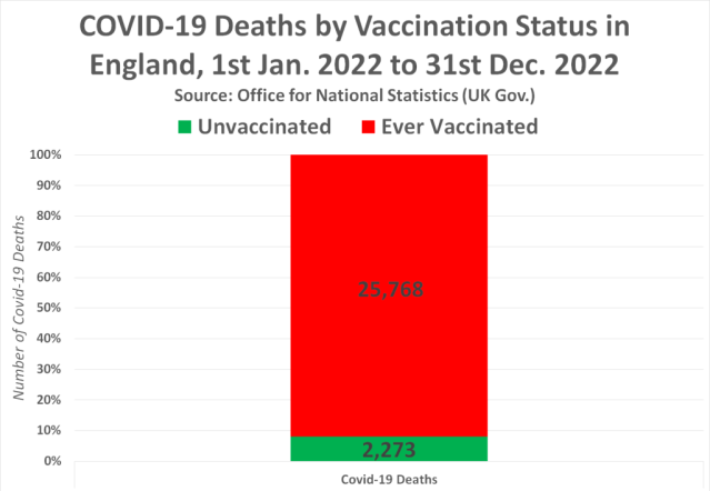 And as we know, with mortality rates per 100,000 lowest among the unvaccinated, 92% of Covid-19 deaths in the UK in 2022 confirmed to have been among the triple+ vaccinated, and 2 million excess deaths since their roll-out, there is nothing safe about the Covid-19 vaccines. But you can read more about that here, here, and here.