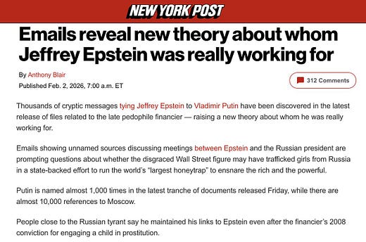The NY Post wants readers to believe that Russian President Putin begged for a meeting with Epstein... and Epstein turned him down 🤣🤣🤣