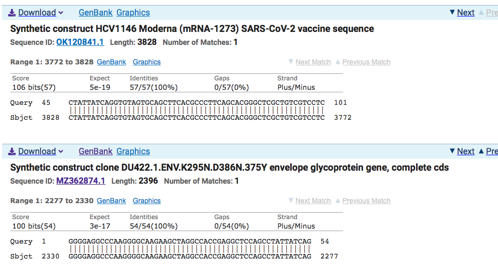all Moderna vaccines may share some 3’ sequence and our original assemblies of a Moderna Bivalent Vaccine may have some components missing on the 3’end where the 2 different spike sequences are cloned into the plasmid. When you assemble reads from 2 vaccines, the assemblers try to smash the difference together to draw a consensus. This is could be an artifact of assembling bivalent vaccines and our reference is missing these HIV components. These HIV components in spike are a known controversy since the Pradhan paper.
