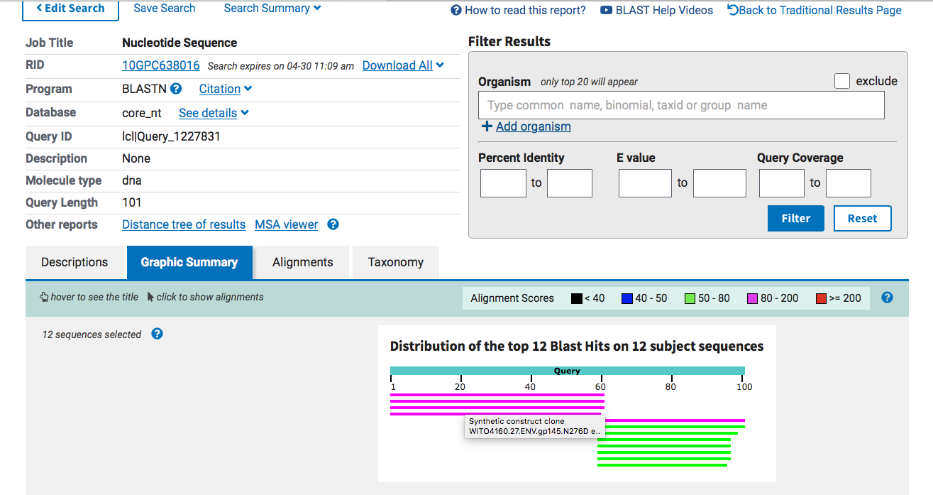 Green is top BLAST hit and Pink is the second BLAST hit.