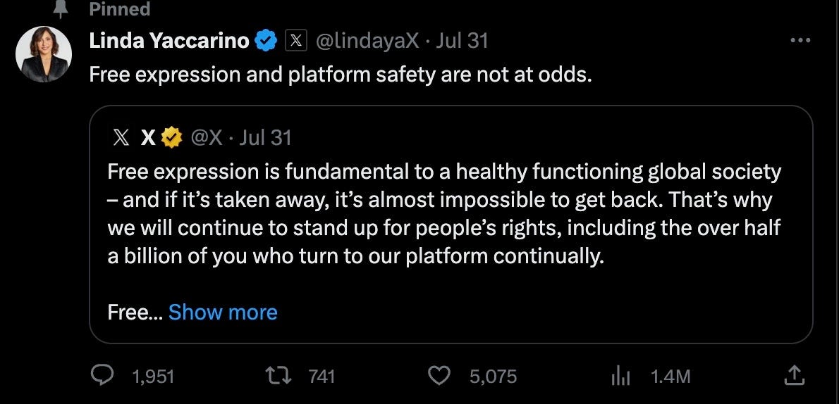 And the latest policies perfectly reflect Linda Yaccarino’s technocratic tendencies: