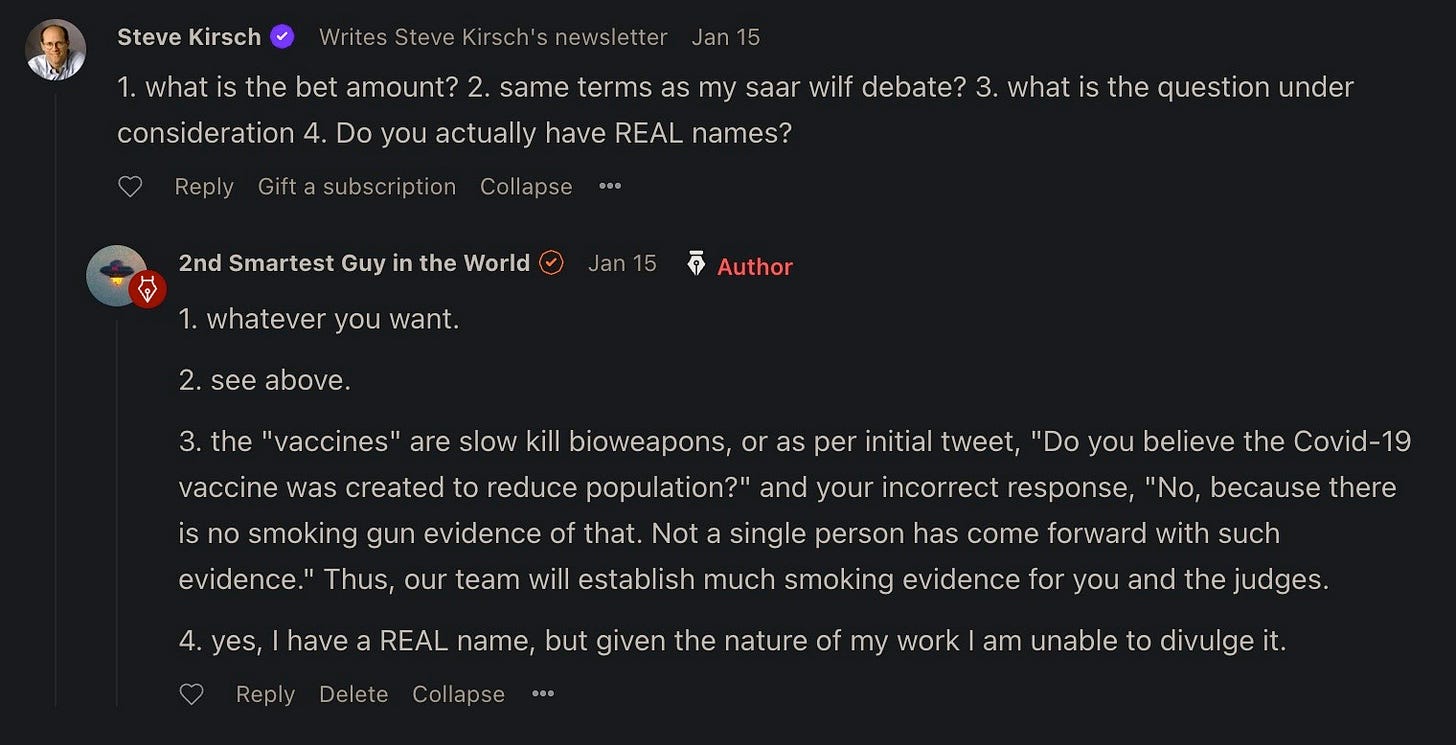 As many of you are aware, Steve Kirsch likes to throw out large bets on all things “vaccine.” Last week I wrote an article on how Steve, despite doing excellent work for our cause, is completely blind and in denial when it comes to the fact that the “vaccines” are deliberate slow kill bioweapons.