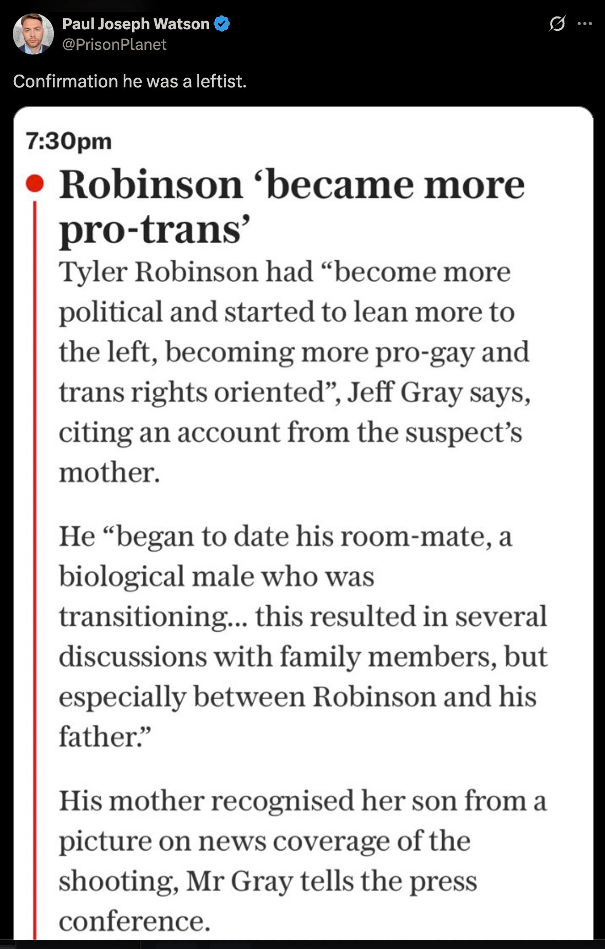 UPDATE đ¨Text Exchange Between Tyler Robinson & His Trans Boyfriend: Charlie Kirk Was Assassinated by a Radical Left-Wing Transgender Terror Cell