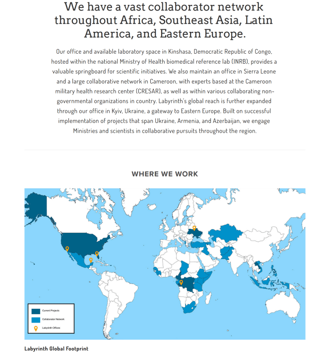 Founded in 2017, Labyrinth Global Health is allegedly a “women-owned small business with deep expertise and a proven track record supporting initiatives for scientific and medical advancement.”
