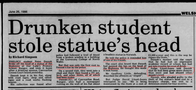 While young, Peter Daszak apparently stole stuff he needed instead of paying for it, such as the above-mentioned TV set and a hi-fi radio. For entertainment, he broke off and stole the “head of a Madonna statue” and even painted its lips with lipstick.