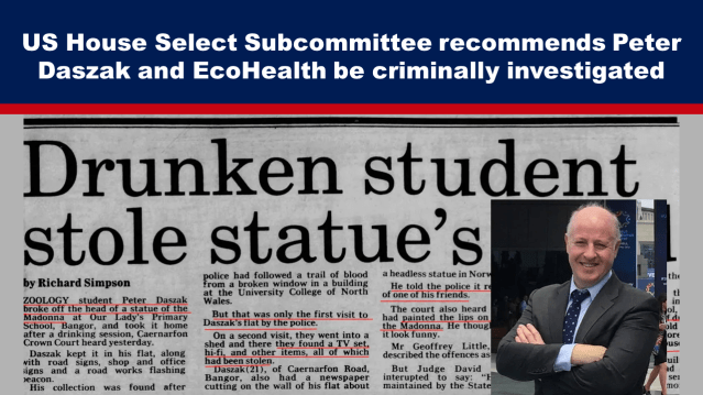US House Select Subcommittee recommends Peter Daszak and EcoHealth be criminally investigated