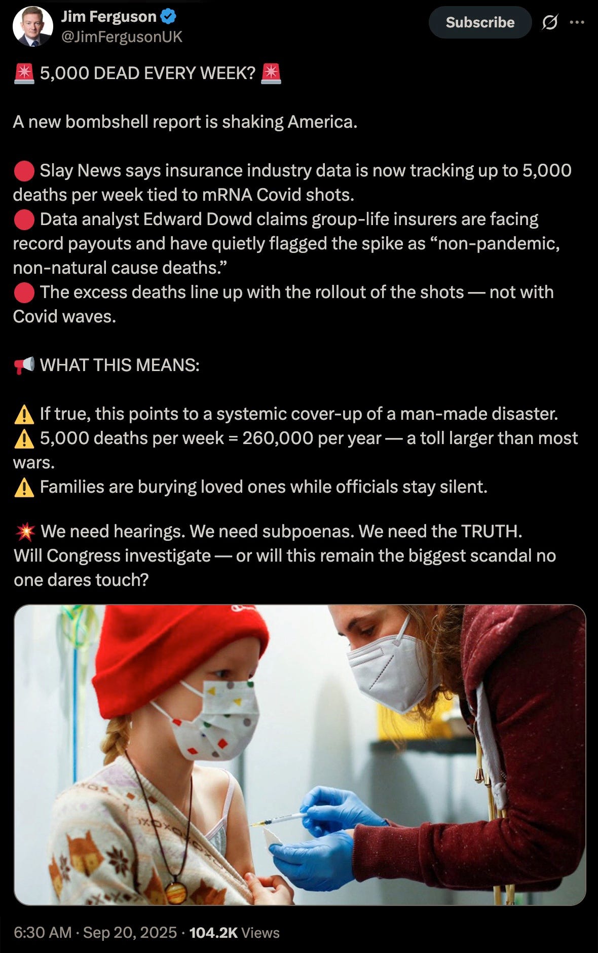One of the worldâs leading data experts has revealed that the insurance industry is now seeing up to 5,000 deaths every single week that are linked to Covid mRNA âvaccines.â