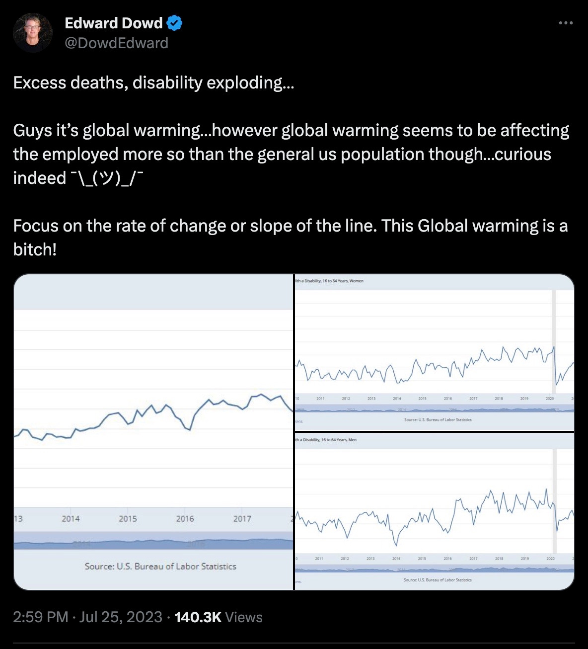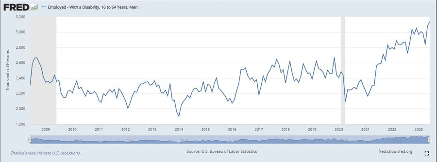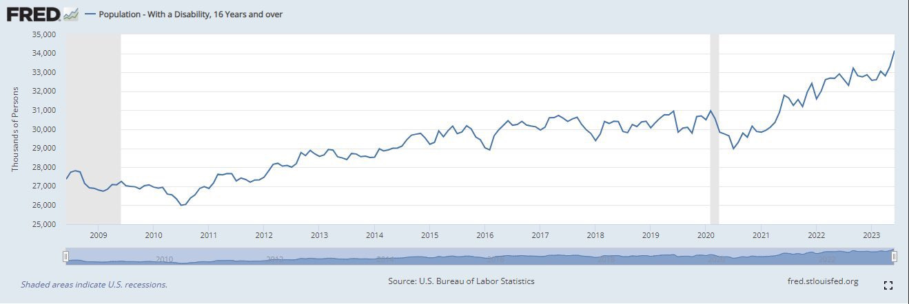 And there we have it. Or why disabilities amongst the most productive and healthiest members of society are going parabolic like never before: