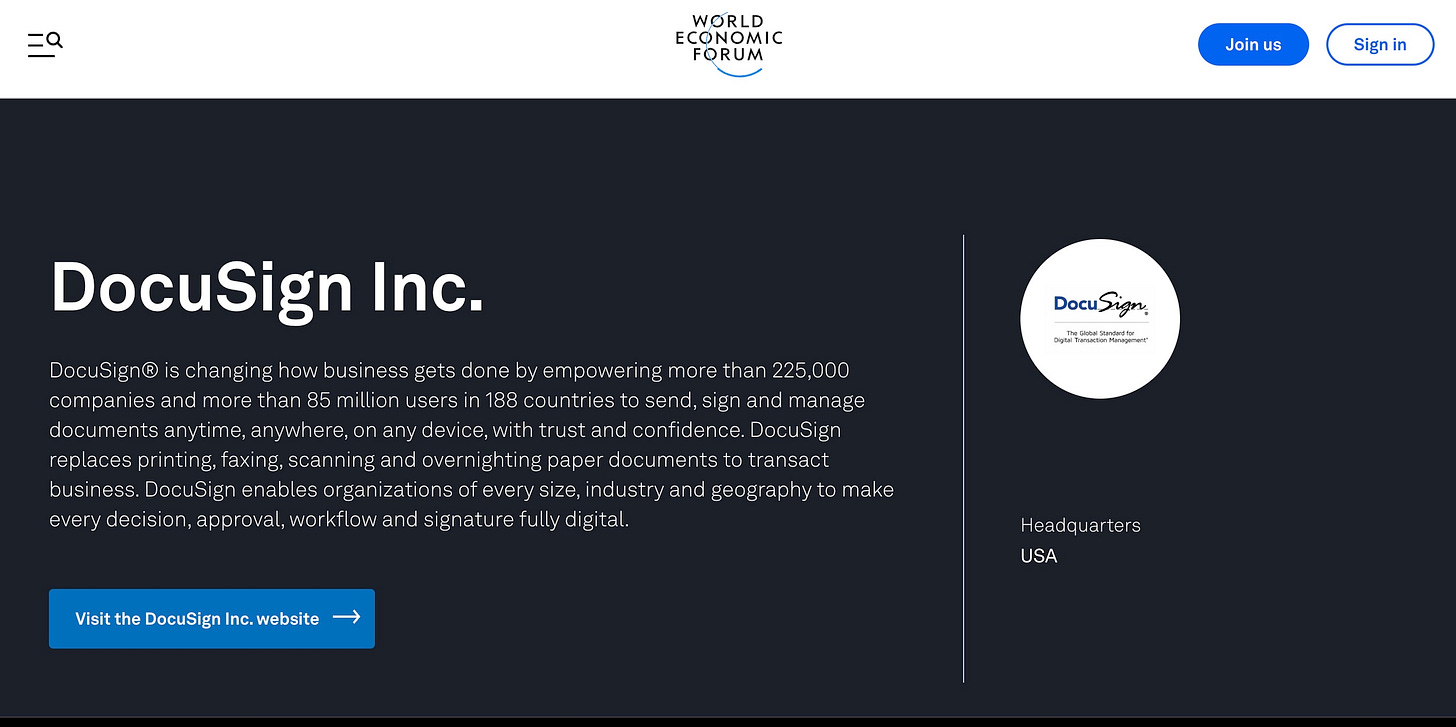 We also know that the UN and WEF are the public driving forces behind PSYOP-CLIMATE-CHANGE. So what are the odds that DocuSign has been WEF “penetrated” and is essentially their partner in crime?