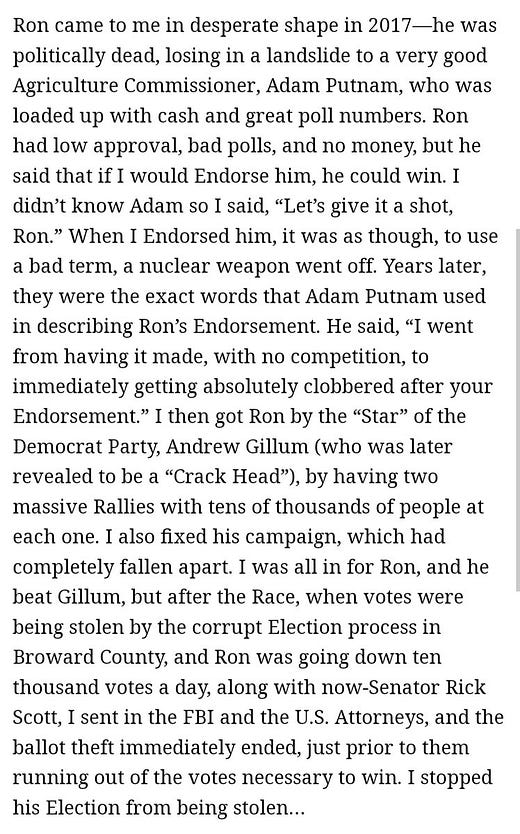 Without Trump’s endorsement there would be no Governor DeSantis.