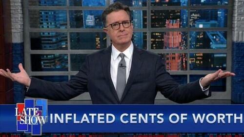 Let’s set aside the prospect that Colbert is a complete idiot who doesn’t seem to grasp that the electricity that charges his Tesla is most likely generated in part or in full by natural gas, oil or coal. The cost of charging up his car is going to inflate right along with normal energy prices. Instead, let’s consider the possibility that Colbert is simply regurgitating a narrative that was assigned to him, just as he has done in the past.