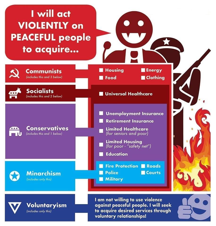 I've been toying with AnCap for a while. Shared this with a neighbor who's still stuck on the left when it comes to the destruction of life via abortion and spaying/neutering human beings via queer theory. She can't get over the CogDis... Nonetheless, she sees evil, greed, corruption everywhere, even in places I never thought to look.